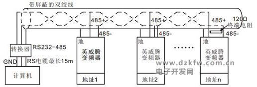 接线常采用如图1-1所示的链式连接法,在远端加上120Ω的终端电阻。