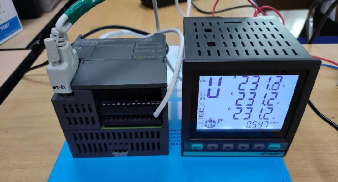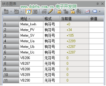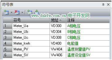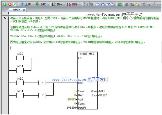 读取的数据存放在 CPU 中的 VB300-VB311中;VB300,301,302,303对应A相电压;VB304,305,306,307对应B相电压;VB308,309,310,311对应C相电压。因为电压值是双字节存放,所以用VD300地址读取A相电压,VD304地址读取B相电压,VD308地址读取C相电压。