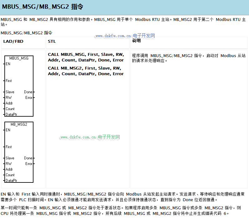 本示例使用单个主站及 MBUS_CTRL 和 MBUS_MSG 指令。同一理念对使用第二个主站及 MB_CTRL2 和 MB_MSG2 指令的示例同样适用。