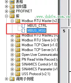 (7)程序5:读第一台从机设备,地址1,型号DW9L或DS9L或DS7L。当第一个启用标志 (M2.0) 接通后,调用 MBUS_MSG 指令。只需为启用该指令的第一次扫描设置 First 参数。该指令会对从站(Slave =1)的 12个保持寄存器执行读取 (RW = 0) 操作。