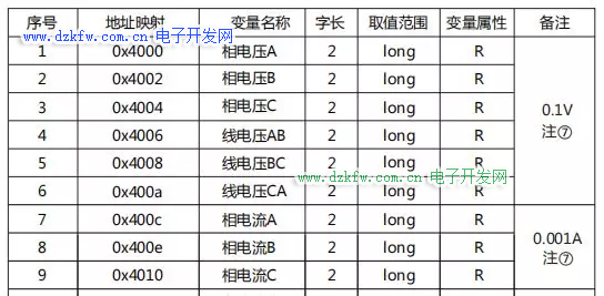 读0x4000开始的A相电压值,需将0x4000转换为十进制数0x4000→16384,再用400001+16384=416385。