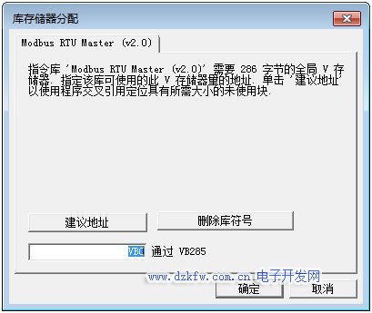 (2)设置库存储器的地址分配(系统已分配VB0~VB285用于modbus通信使用,我们就从VB286开始)