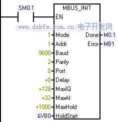 (1)MBUS_INIT指令用于启用、初始化或禁止Modbus通信。在使用MBUS_SLAVE指令之前,必须正确执行MBUS_INIT指令