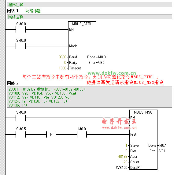 西门子plc s7-200读取智能电表的数据梯形图实例