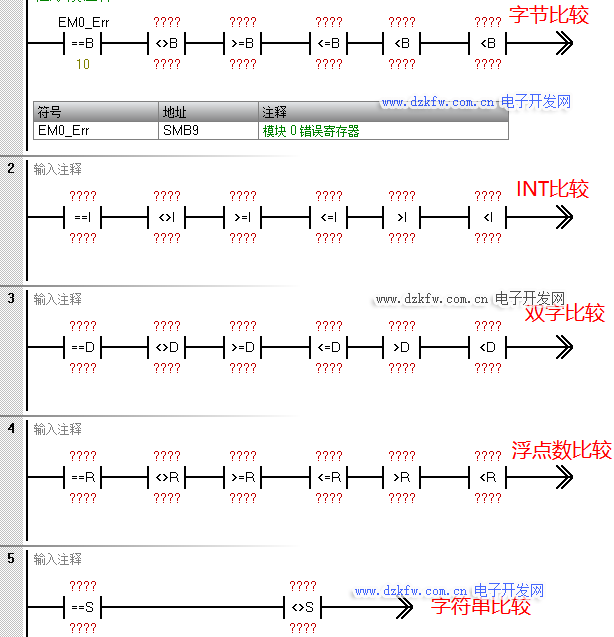 如EM0_Err 如果等于10,则这个触点会接通,否则一直处于关闭状态。