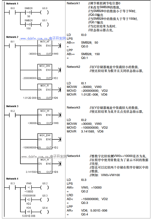 对于数值比较指令,是这样的,比较指令上面的值和指令下面的值做比较,条件满足时则触点接通,否则触点关闭。