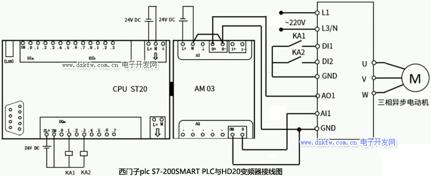 话说PLC和变频器控制一般都是采用通信的控制方式,通信方式一般采用Modbus-RTU(485串口)的通信方式,但我们PLC常用的模拟量是可以控制吗?模拟量是可以控制的,那么可以控制,该如何设置呢?接下来就带大家来实现S7-200SMART PLC与HD20变频器模拟量控制方法。
