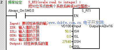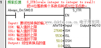 第二步:(通过变频器模拟量输出给定PLC反馈当前频率)