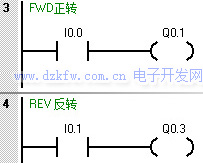 第三步:(Q0.1输出变频器正转FWD、Q0.3输出变频器反转REV)