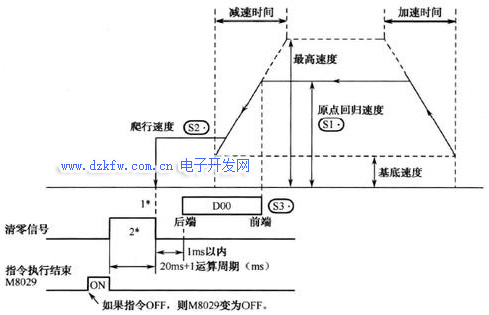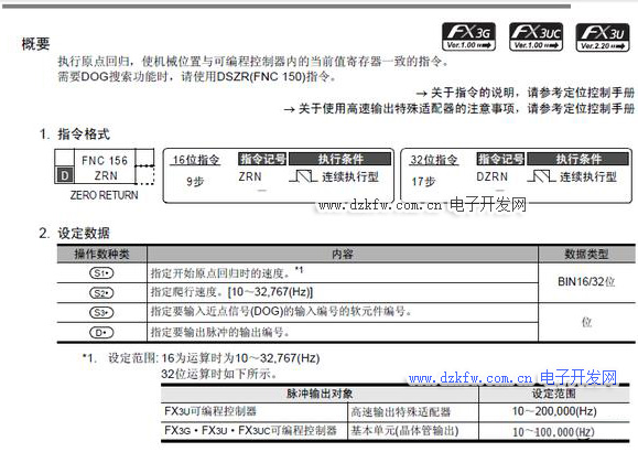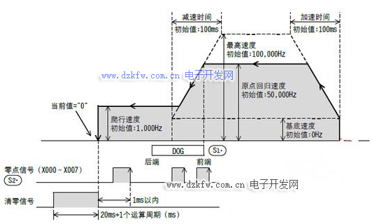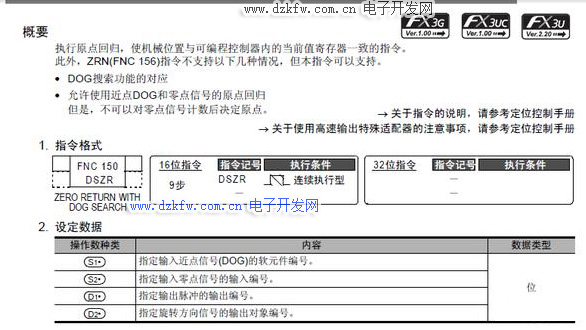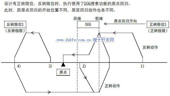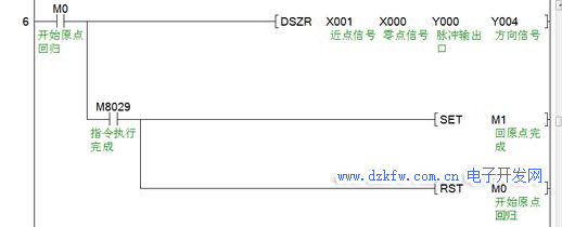 三菱给出了两个原点回归指令,ZRN和DSZR。ZRN为原点回归指令,DSZR为带DOG搜索的原点回归指令。