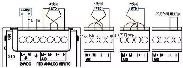 模拟量电流、电压信号根据模拟量仪表线缆个数分成两线制、三线制、四线制三种,不同类型的信号其接线方式不同。