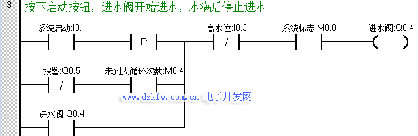 (2) 按下开始按钮,进水,水位到达高水位后停止进水;