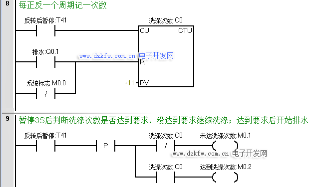 第七步:脱水完成一次记一次数,同样的当系统停止或周期完成报警时对其进行复位。