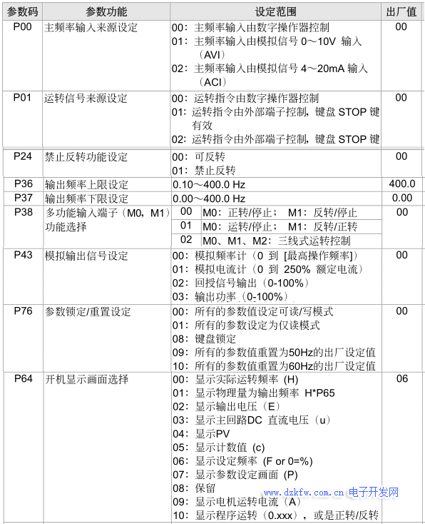 (4) 模拟量输入部分中的AVI与GND连接表示输入信号为+10V;ACI和GND表示输入信号为4-20MA的电流信号。本例中我们使用的是电压信号输入控制电动机