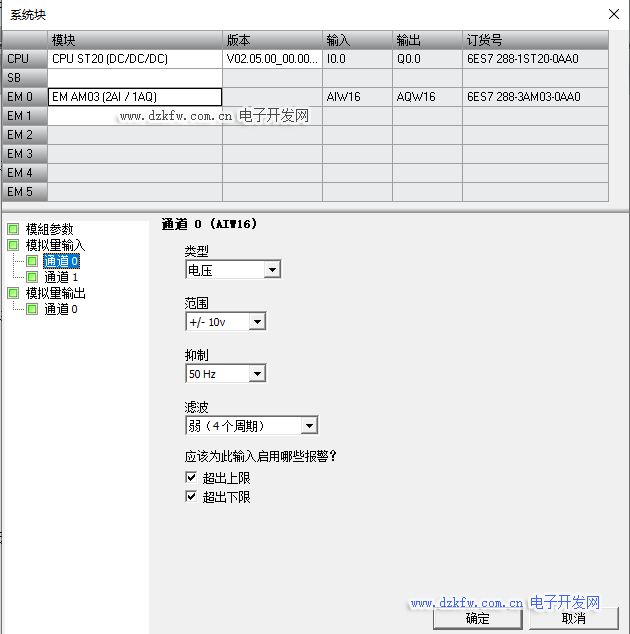 (4)在模拟量模块组态时输入信号为两路为同一组信号类型