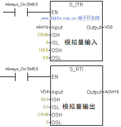 (3) 模拟量的库指令分别有模拟量输入和输出两条