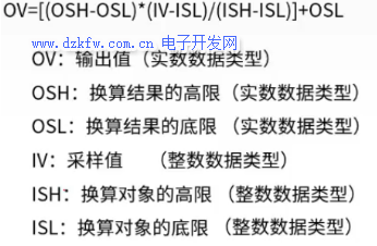 (2) 本例子使用的是库文件的形式编写的;库指令内部是根据下图的公式编写后生成的子程序进行调用;也可以根据公式自行编写换算程序,换算公式及符号含义如下: