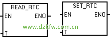 ①读取时钟指令:当指令EN端条件满足时读取实时时钟指令从CPU 读取当前时间和日期,并将其装载到从字节地址T 开始的 8字节时间缓冲区中。