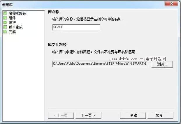 7. 对库进行命名,点击 '浏览' 将库存到指定位置,设置完成后单击'下一页'。