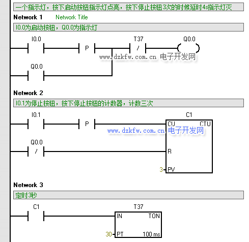 西门子plc S7-200按下启动按钮指示灯点亮,按钮使用计数器和计时器的例子