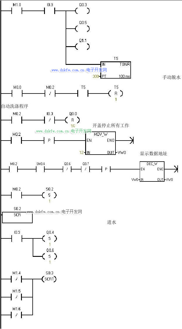 4.1 洗衣机工作流程图 …………………………………………………………5 4.2 梯形图 ……………………………………………………………………5