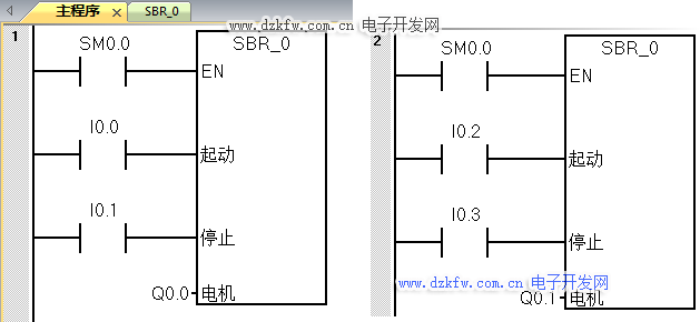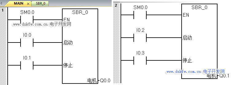 此时按下I0.0,Q0.0和Q0.1都会动作,这是因为,这两个子程序共用一个输出地址。