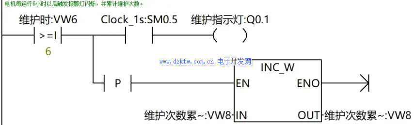 第四步:(电机每运行6小时以后触发报警灯闪烁,并累计维护次数。)