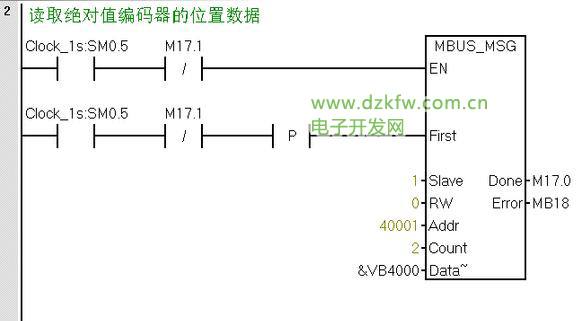 通过modbus读取绝对编码器的数据,使用MBUS_CTRL和MBUS_MSG指令读取数据