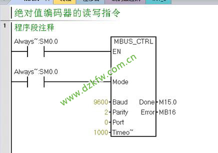 西门子200smartPLC Modbus读取绝对值编码器的数据