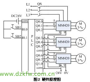 改造后的系统采用S7-200 PLC、西门子MM420变频器,改造方案硬件原理图如图2所示。