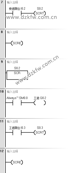 写程序的时候注意在SCR段中,用转移条件对应的触点驱动SCRT指令即可实现转移到下一个状态步。