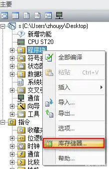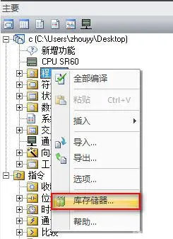 4、鼠标选中程序块文件夹,单击右键,下拉菜单中选择库存储器,如下图所示。