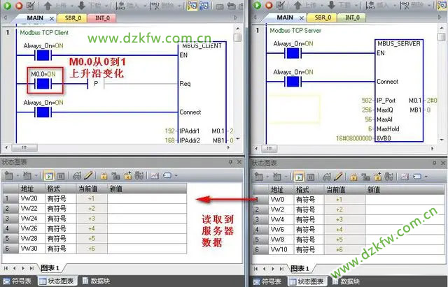 由于客户端要读取服务器的数据,在状态图表中修改当前值,如图所示