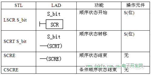 西门子S7-200系列PLC的顺序控制指令如下表所示: