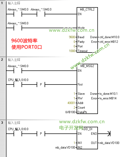 西门子S7-200Smart PLC Modbus RTU串口通讯梯形图实例