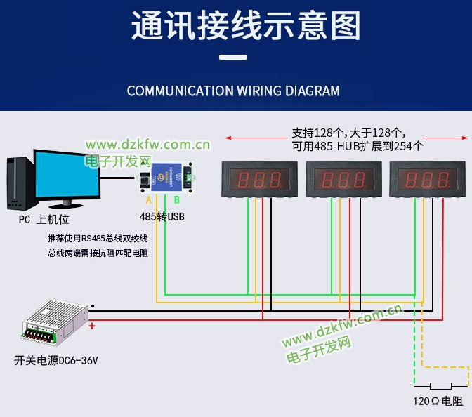 从机:LED数码管显示屏(RS485串口表LED数码管显示屏可调模块PLC通讯MODBUS-RTU协议3位)