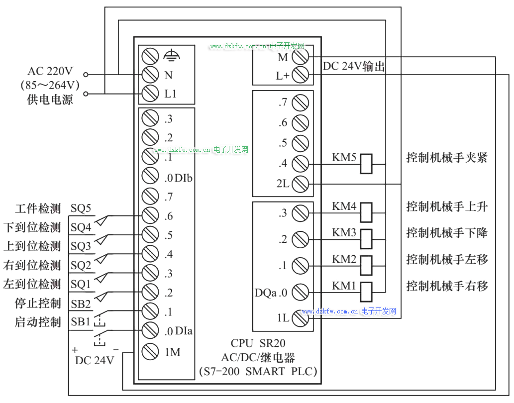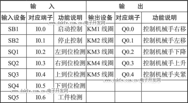表5-3 简易机械手控制采用的输入/输出设备和对应的PLC端子