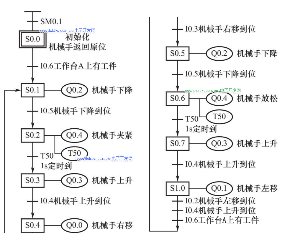I0.3机械手右图移5-到11位 简易机械手控制状态转移图