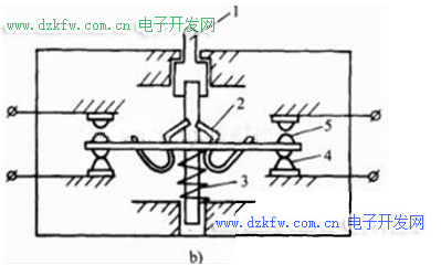 1.推杆 2.弹簧 3.压缩弹簧4.动断触点 5.动合触点