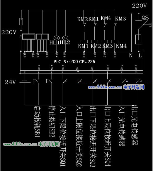 根据控制系统的控制要求,确定I/O分配,并配置相应的PLC模块。根据控制要求及I/O分配,画出控制系统接线图。