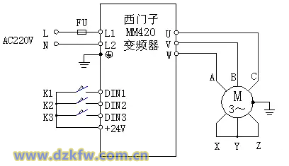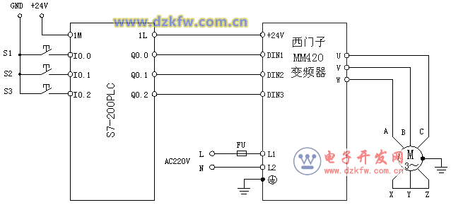 2. 西门子S7-200PLC和西门子MM420变频器外部接线图