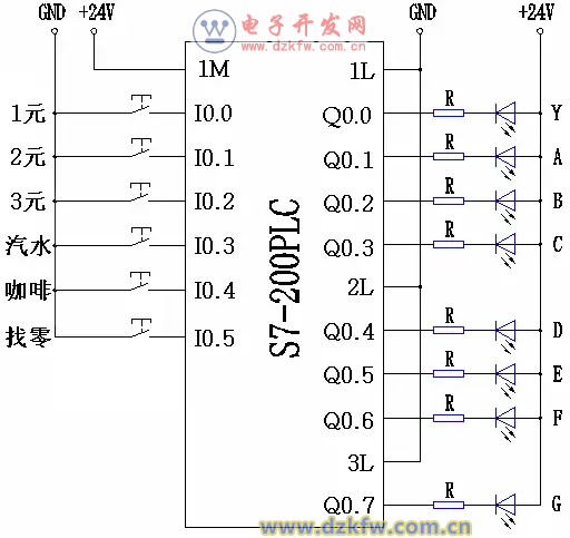 5. 在购买了汽水或咖啡后,Y0显示当前的余额,按下“找零按钮”后,Y0显示00,表示已经清零
