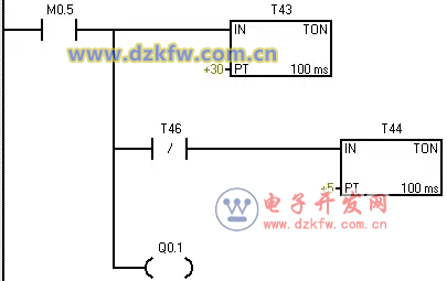 3. 打开示例程序或用户自己编写的控制程序,进行编译,有错误时根据提示信息修改,直至无误,用PC/PPI通讯编程电缆连接计算机串口与PLC通讯口,打开PLC主机电源开关,下载程序至PLC中,下载完毕后将PLC的“RUN/STOP”开关拨至“RUN”状态。