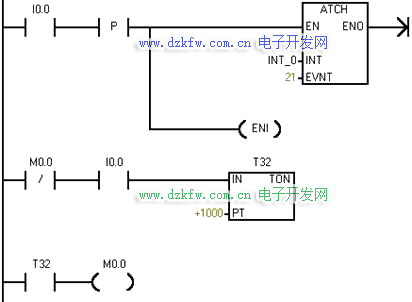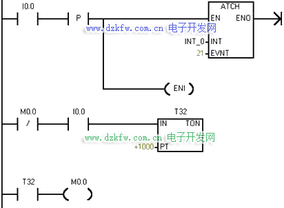 然后,在开总中断,(ENI)指令就是开总中断,使用S7-200PLC的中断一般有3个步骤: