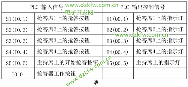抢答器的PLC控制系统的I/0端口如下表1所示:
