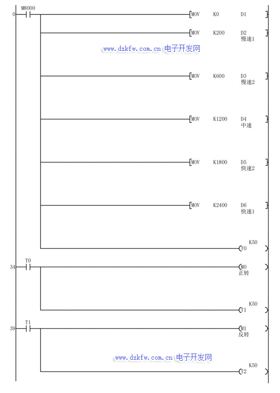 三菱PLC控制步进电机转向和速度的梯形图程序