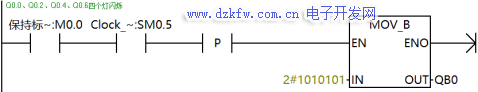 第二步:(通过中间变量M0.0接通SM0.5外加上升沿传送二进制0101 0101至QB0)
