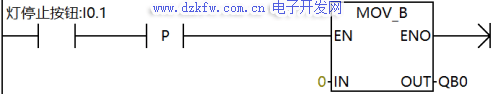 第四步:(按下I0.1停止中间变量M0.0和复位QB0所有位)