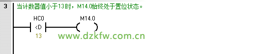 上述程序注解:当计数器值小于13 时,M14.0始终处于置位状态。