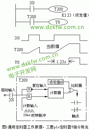有关三菱fx系列plc定时器的用法,重点介绍通用定时器与积算定时器的用法,通用定时器的特点是不具备断电的保持功能,积算定时器具有计数累积的功能。